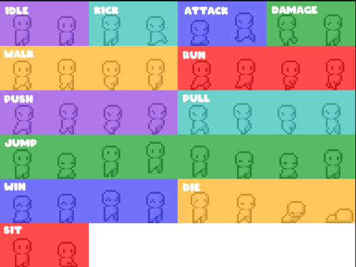 Amazing asset pack! Would be handy to label which sprites are for what animation.